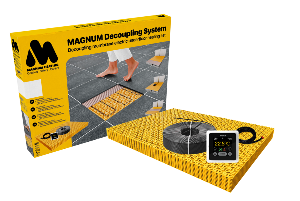 El concepto membrana de desacoplamiento MAGNUM es un sistema de calefacción eléctrica por suelo radiante diseñado para ofrecer una distribución homogénea y precisa del calor en todas las estancias, garantizando un confort térmico óptimo. Su diseño avanzado incorpora una membrana de desacoplamiento que proporciona una protección adicional al absorber los movimientos naturales entre el soporte y el revestimiento final del suelo.