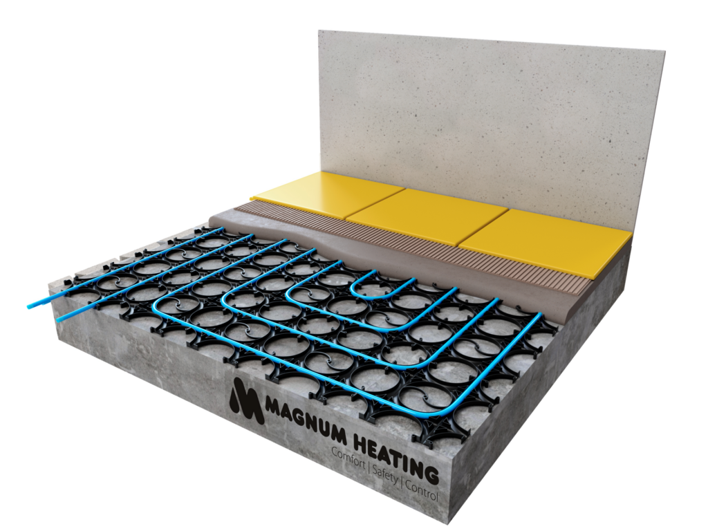 La manta MAGNUM es un tipo de suelo radiante único de tan sólo 4mm de espesor. El sistema ha sido diseñado para ser utilizado en un suelo previo a la colocación de baldosas o incluso para un suelo ya existente.